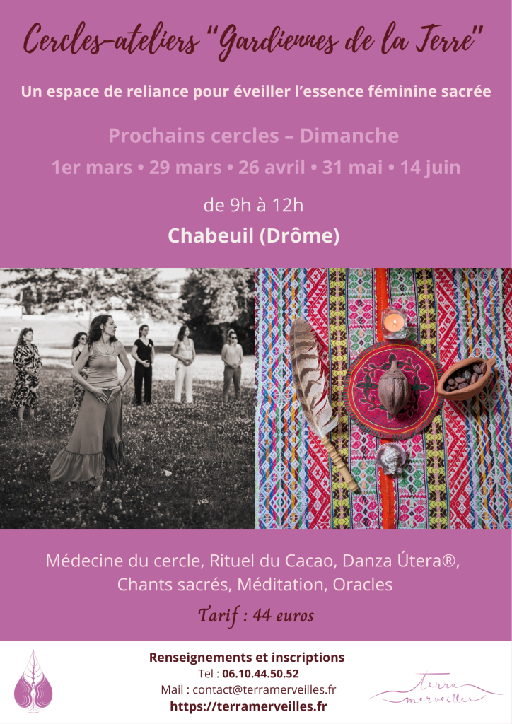 En cette période de grands changements, il est essentiel de revenir au corps et renforcer notre lien à la Terre-Mère, afin de cultiver stabilité, clarté et confiance dans les mouvements que la vie nous invite à traverser. Je t’invite à un voyage intérieur, à travers un cercle-atelier alliant la Médecine du Cacao Sacré et la Danza Útera® pour t’offrir un… Lire la suite 🌸 Cercle-atelier : Rituel Cacao Sacré et Danza Útera® – Février 🌸